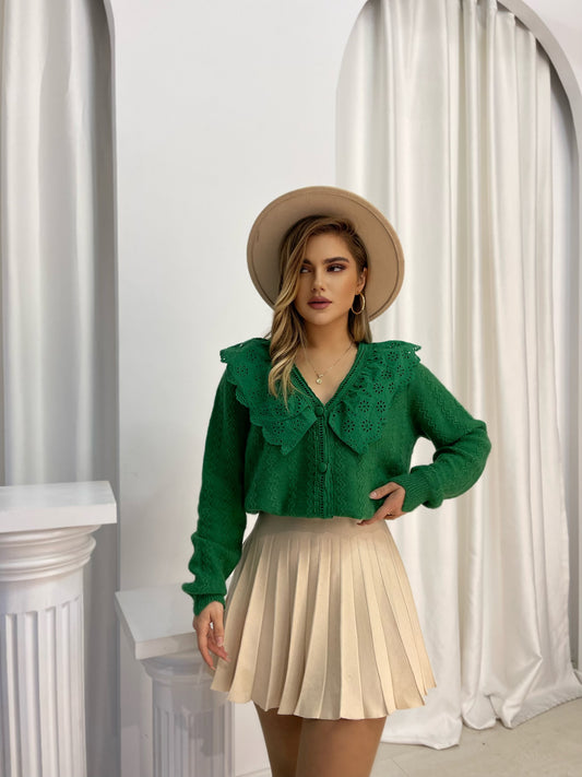 Pulover me jake me dantelle ne pjesen e perparme me jake V-je. Me menge te...