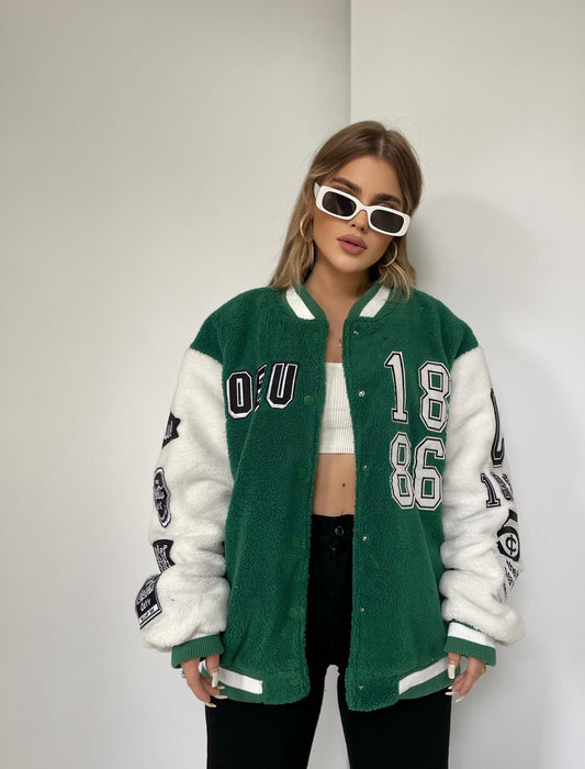 Xhup sportiv oversize me numra. Material i plote shume i mire. Mberthimi behet me kopsa...