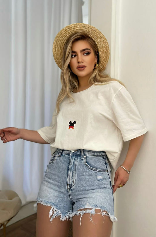 Xhinse te shkurtra me bel te larte. Me dy ngjyra: xhins dhe me nje pjese...