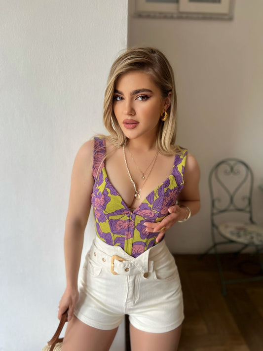 Pantallona te shkurtra me rrip. Material i plote dhe me bele te larte. Mberthimi behet...