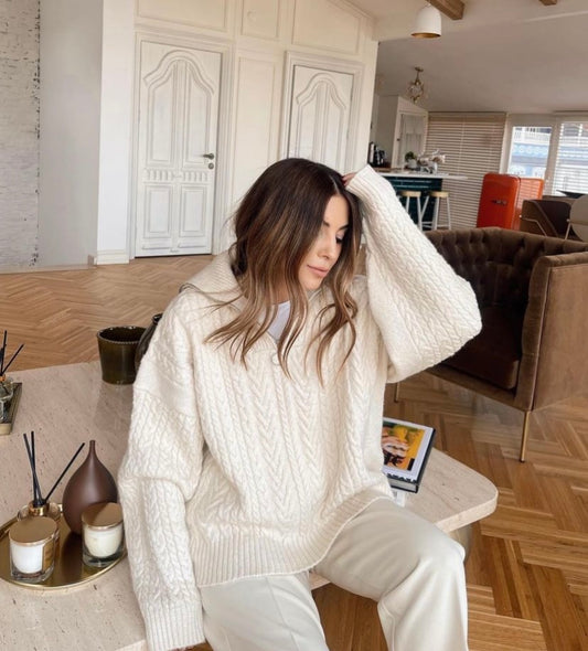 Pulover me jake te madhe me menge te gjata. Pulovra ka gjatesi normale. Menget ne...