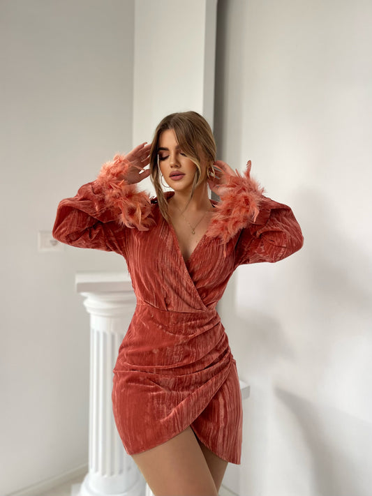 Fustan me jake ne form v-je me kapak me menge te gjata me pupla ne...
