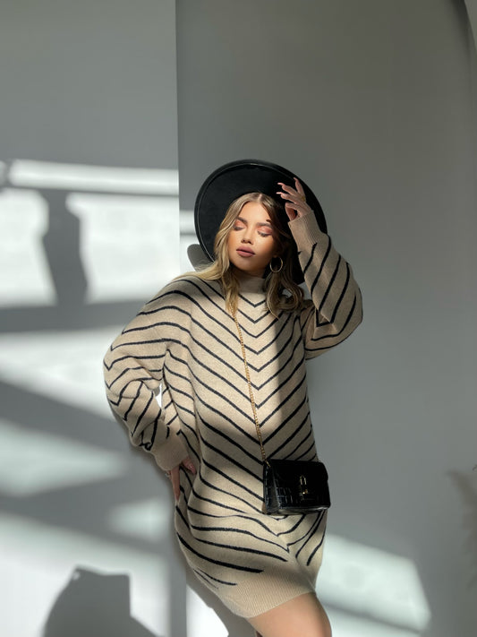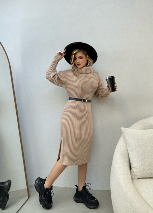 Fustan golf i trikotuar me menge te gjata me golf te madh. Me pak te...