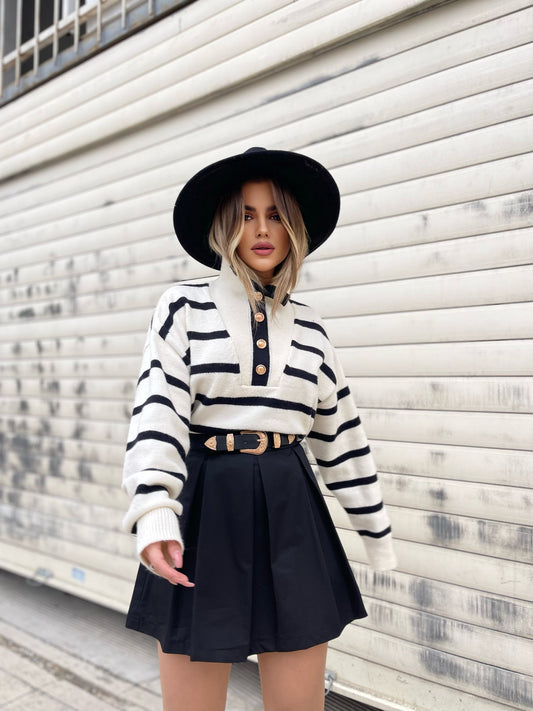 Pulover me kopsa me viza me menge te gjata. Pulovra eshte me golf te madhe....