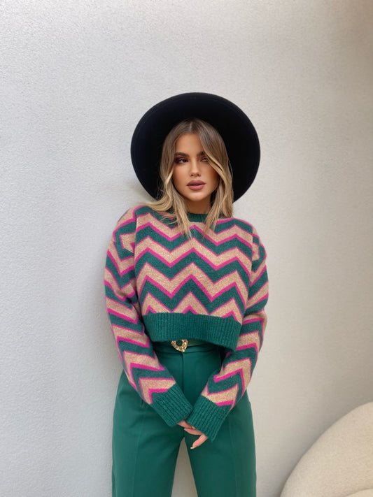 Pulover me viza me menge te gjata. Me jake rrethore. Me doreza ne fund te...