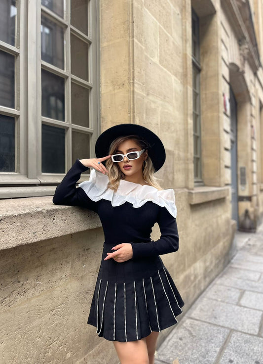 Fustan i zi i ngushte. Material i plote i gomuar, pershtatet perfekt pas trupit. Detaj...