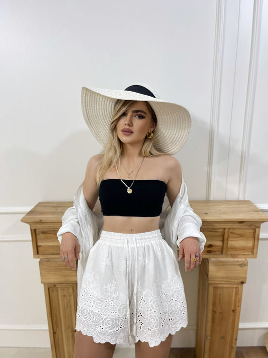 Pantallona te shkurtra lino. Me dizenjo te veçante ne pjesen fundore. Ne bel pantallona jane...
