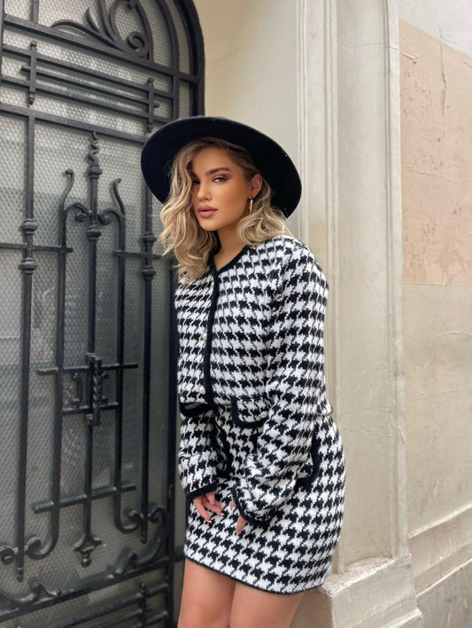 Set me fund te shkurter me xhaket me menge te gjata me jake ne form...