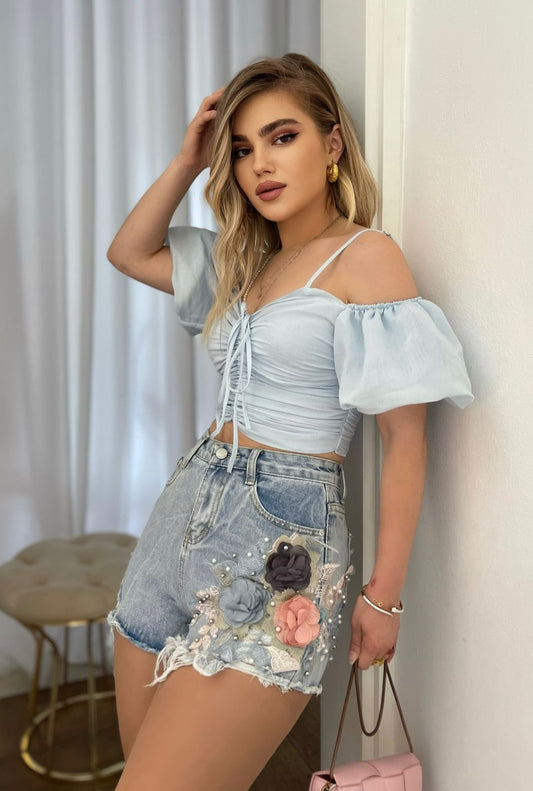 Crop me rripa dhe prerje ne pjesen e bustit. Eshte me tegela ne pjese e...
