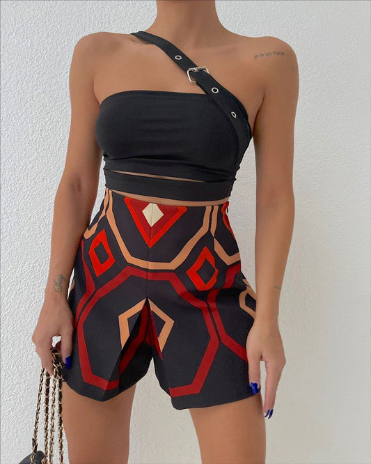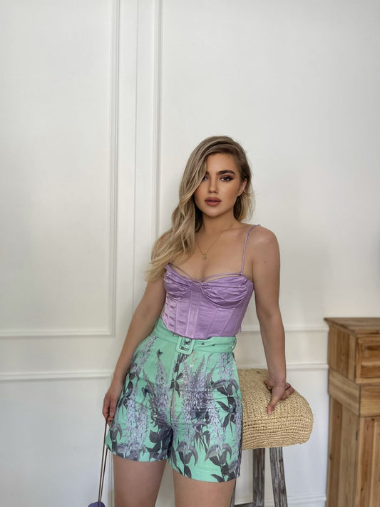 Pantallona te shkurtra me printe abstrakte. Jane me bele te larte dhe kane gjatesi mesatare....