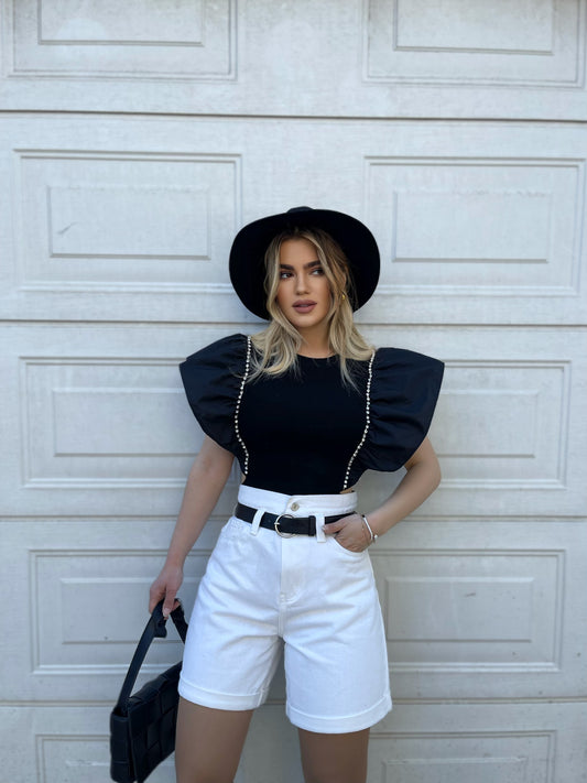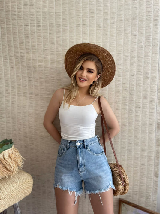 Xhinse te shkurtra me bel te larte. Ne ngjyre te bardhe. Gjatesi perfekte. Rripi i...