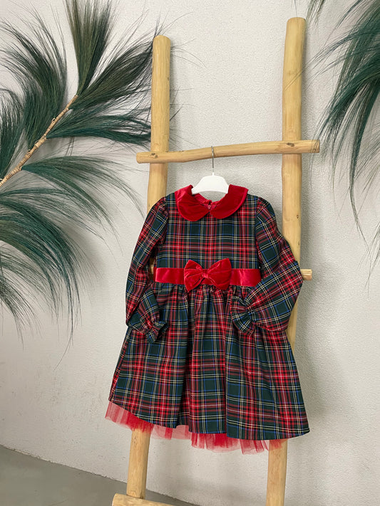Fustan i shkurter me kuadrata dhe fjongo ne bel. Ka jake rrethore dhe eshte me...