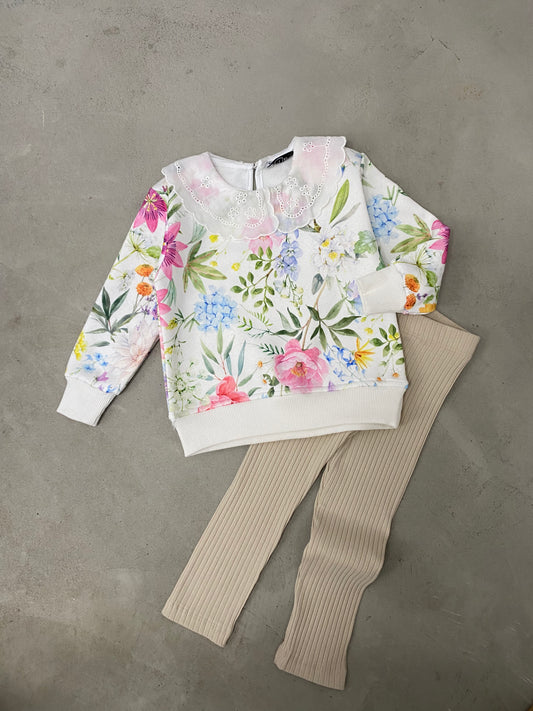 Kostum sportiv bluze me lule me jake dantelle dhe strece te gjata.Material pambuku dhe cilesi...