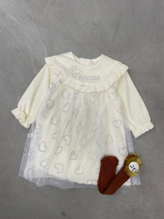 Fustan per vajza te vogla me detaje me zemra dhe me shkrim Princess. Cilesi fantastike.