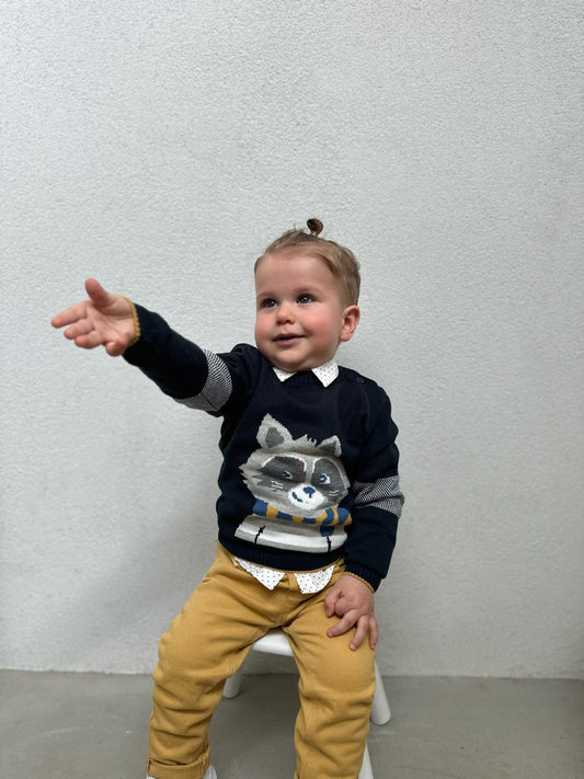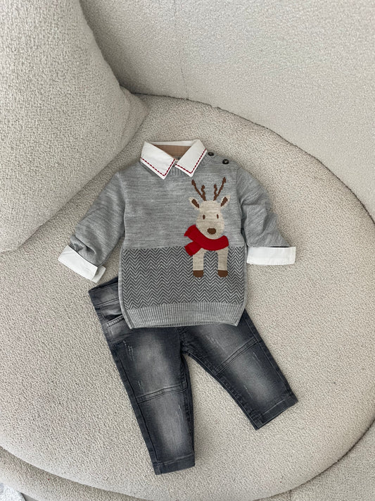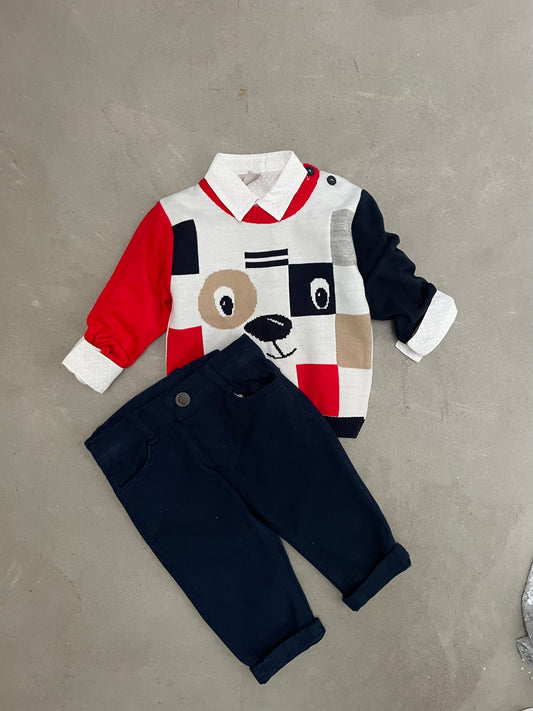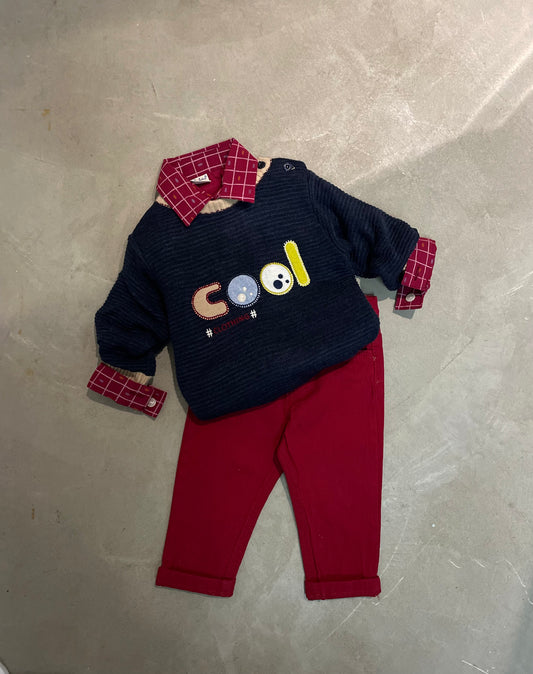 Kostum me pulover, kemishe dhe pantallona. Ka material te plote dhe cilesi fantastike. Super stil...