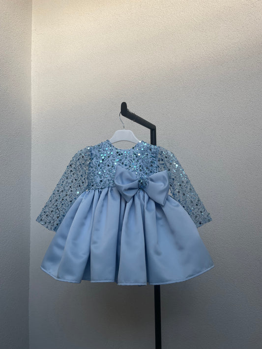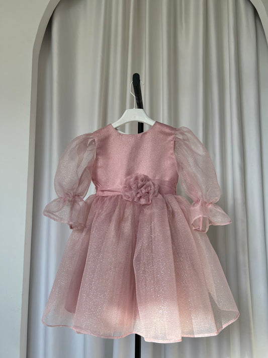 Fustan tyl me xixa dhe rrip ne bel. Vjen me fjongo ne pjesen perpara dhe...