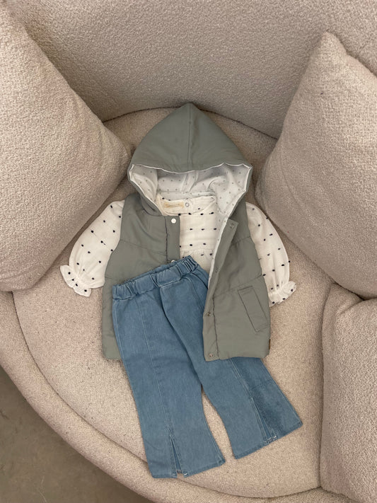 Kostum me tre pjese per vajza . Vjen me jelek, bluze dhe xhinse. Material cilesor...
