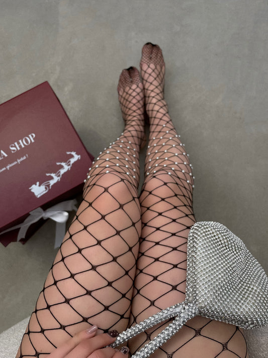 Geta rrjet me detaje me perla ne pjesen e perparme te kembes. Teper figurante dhe...