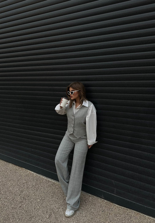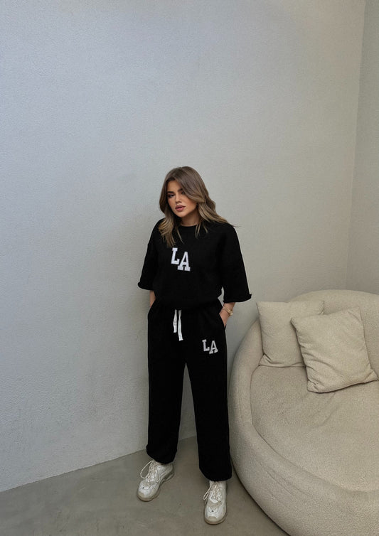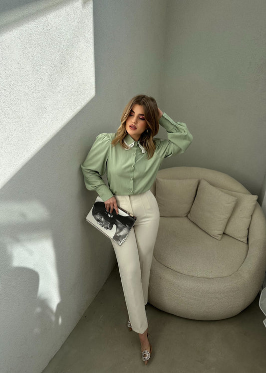 Set me bluze me krahe te gjate dhe pantallona te gjata me stil fundi siper....