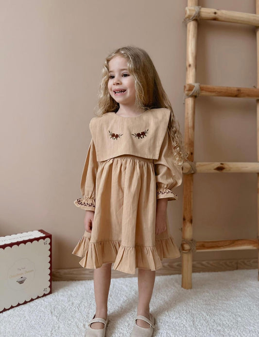 Fustan i gjate me pala dhe lule tek jaka. Ka material te plote. Stil dhe...