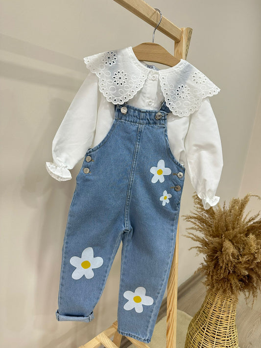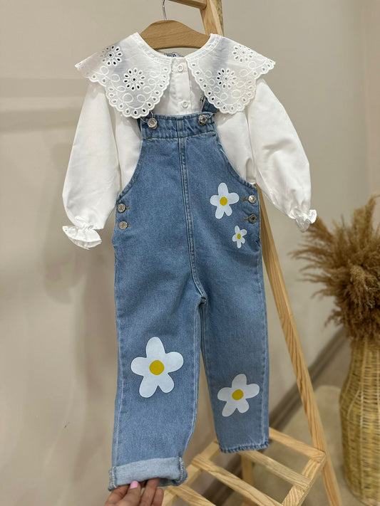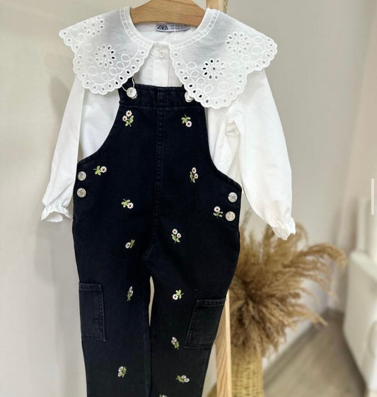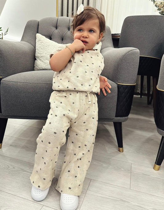 Seti eshte i ndare ne dy pjese bluza dhe tuta me detajin e luleve. Bluza...