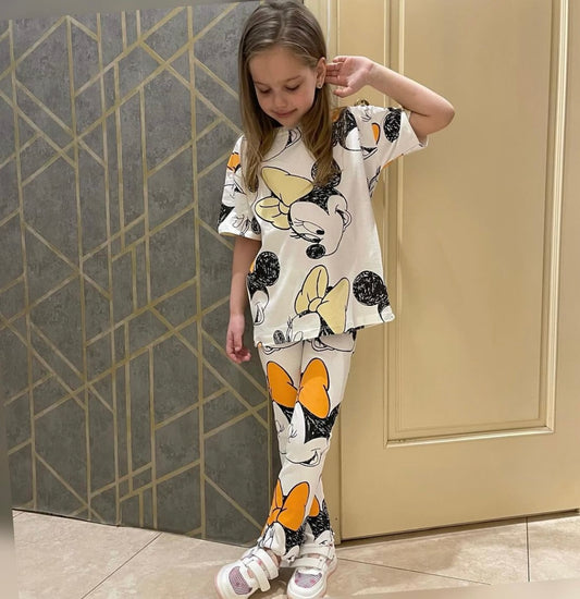 Seti bluze dhe tuta me dizenjo Minnie. Bluza vjen me menge te shkurtera. Tutat jane...