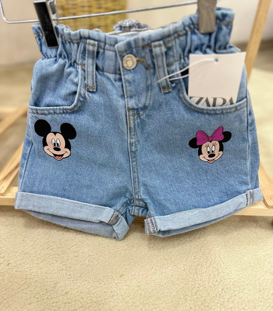 Xhinse te shkurtra me dizenjon e Mickey dhe Minnie Mouse.Vijne me detajin e dy xhepave...