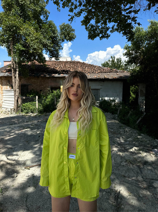 Seti kemishe dhe pantallona te shkurtera. Kemisha vjen me kopsa ne pjesen para. Pantallonat vijne...