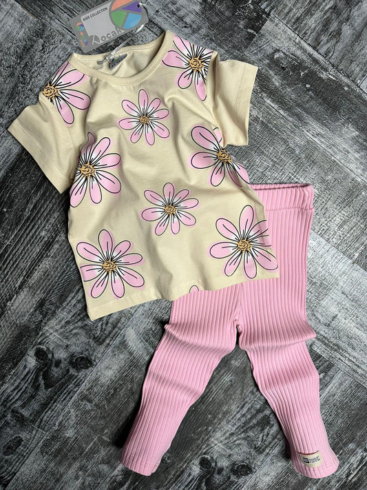 Seti bluze dhe strece. Bluza vjen me menge te shkurtera dhe detajin e luleve ne...