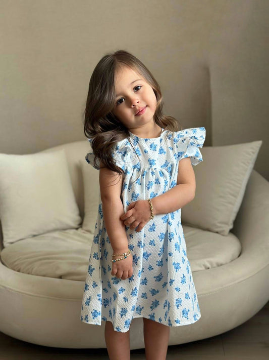 Fustan me lule. Vjen me krahe te shkurter ne forme fluture dhe material te plote....