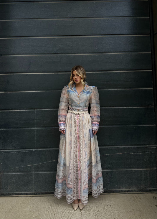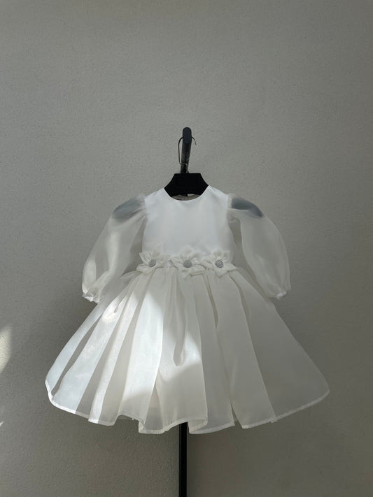Fustan tyl me menge te fryra dhe lule tek beli. Cilesi fantastike.