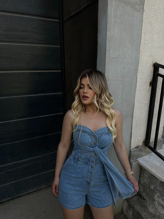 Jumpsuit bust me lidhje para, vjen me detajin e kopsave ne pjesen para. Material i...