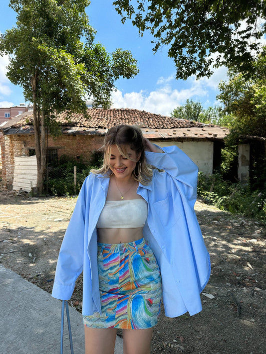 Fundi ylber i shkurter vjen me detajin e xhepave ne pjesen para. Lehtesisht i kombinueshem...