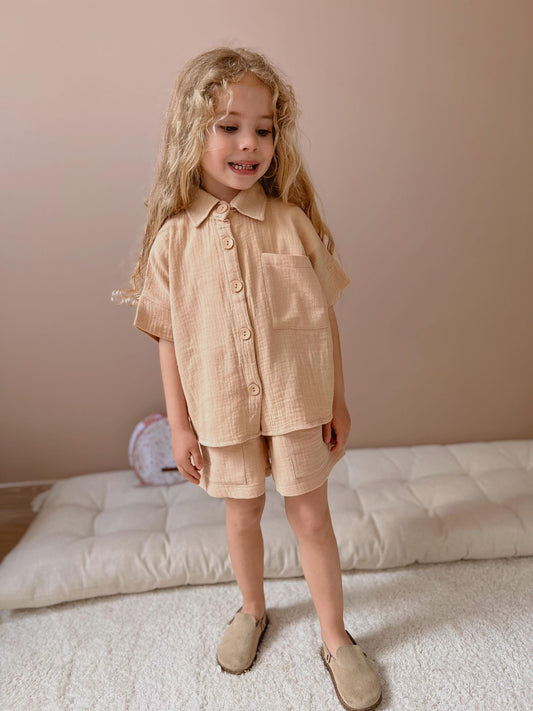 Set lino me kemishe me kopsa dhe tuta. Material i plote dhe cilesi fantastike.
