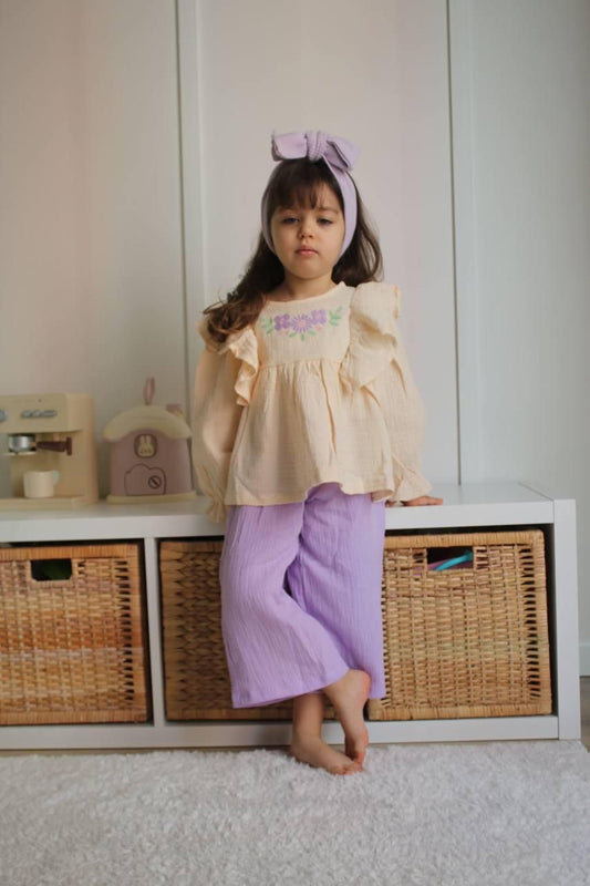 Kostum lino me bluze dhe tuta te gjera. Ka material fantastik dhe eshte super stil.