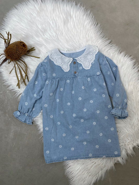 Fustan xhins me dizenjo me lule dhe me jake me dantelle. Ka cilesi fantastike dhe...