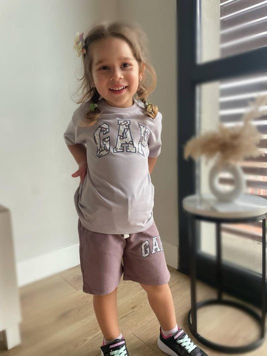 Kostum sportiv me shkrim gap. Vjen me bluze dhe tuta te shkurtra. Teper praktik dhe...