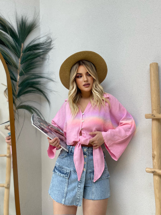 Set me lule. Vjen me bluze te shkurter dhe pantallona me rrip ne bel. Bluza...