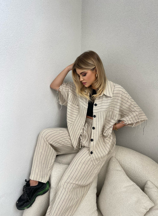 Set kemishe dhe pantallona me viza. Ka material super komod dhe cilesi fantastike.