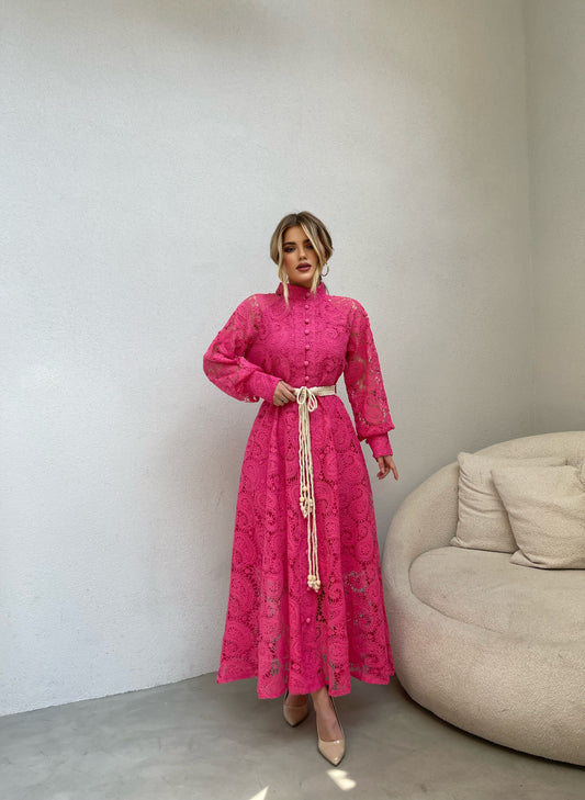 Fustan i gjate me dantelle. Ka material te plote dhe cilesi fantastike. Vjen me rrip...