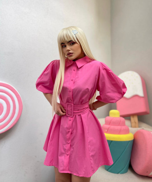 Fustan i shkurter me rrip ne bel. Vjen me krahe te shkurter dhe menge te...