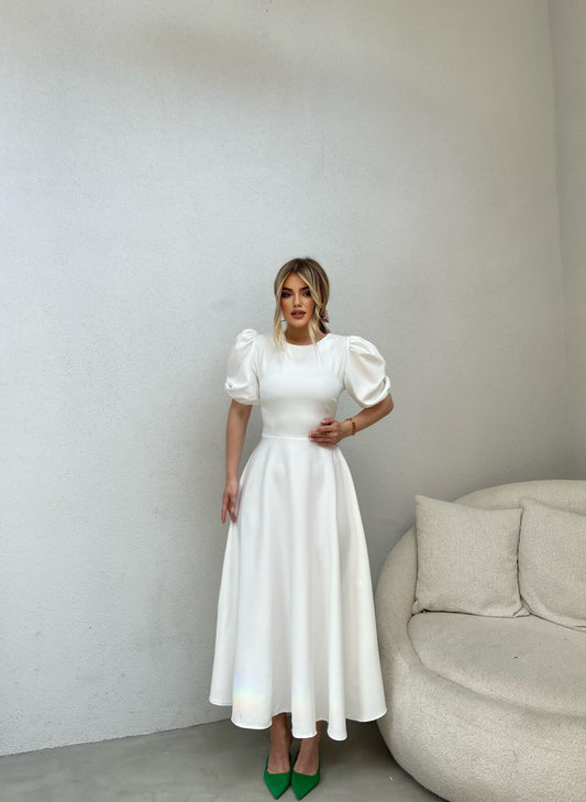 Fustan trecereksh me krahe te shkurter. Vjen me menge te fryre dhe ka jake ne...