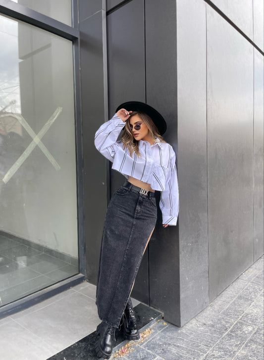 Fund i gjate me te care anash. Ka rrip ne pjesen e belit dhe xhepa...
