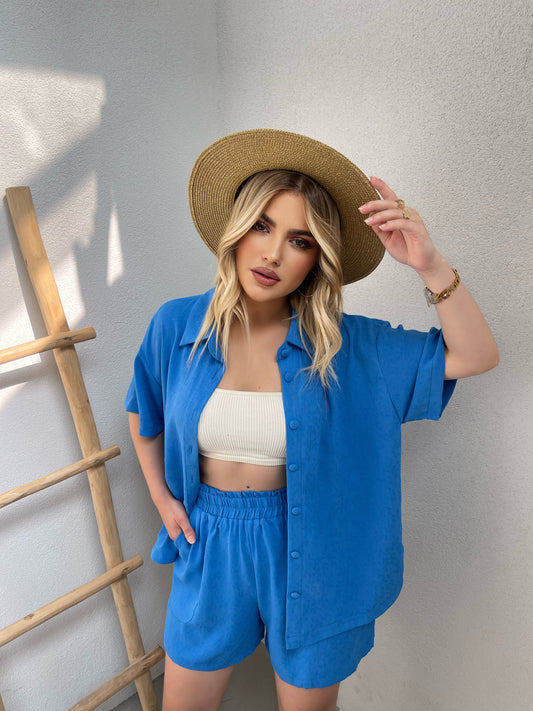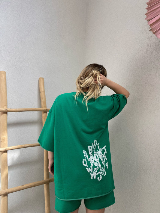 Set kemishe dhe pantallona te shkurtra. Vjen ne ngjyre blu dhe jeshile. Kemisha eshte stil...