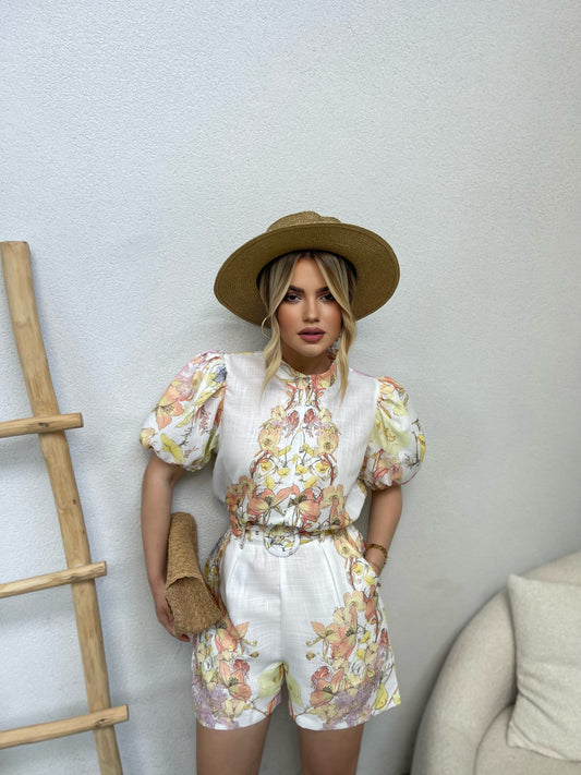 Set kemishe dhe pantallona te shkurter me rrip ne bel. Kemisha vjen me krahe te...