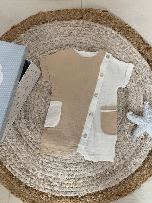 Jumpsuit me kopsa para dhe xhepa anash. Vjen me krahe te shkurter dhe cilesi fantastike....