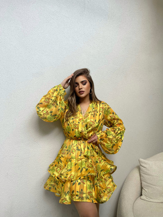 Fustan i shkurter me lule. Ka jake ne forme V-je. Vjen me krahe te gjate...
