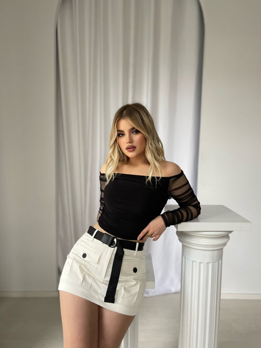 Crop me krahe me tyl. Vjen me rrudha ne pjesen perpara. Ka material te plote...