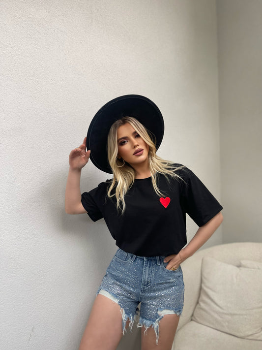 Bluze me krahe te shkurter me figure zemre te vogel perpara. Ka gjatesi normale dhe...