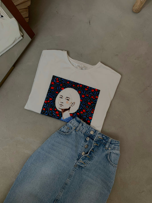Bluze me gure tek supet. Eshte me krahe te shkurter me gjatesi dhe prerje te...